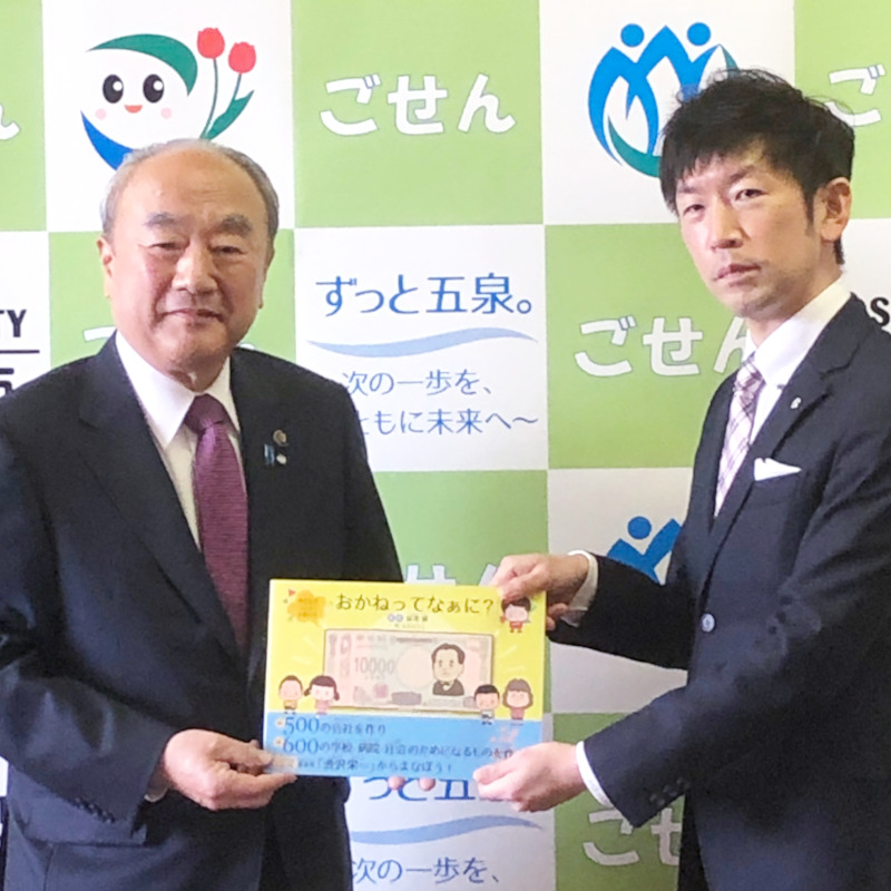 4月9日五泉市役所にて、日本商工会議所青年部発刊の渋沢栄一が教えるお金の話の絵本『おかねってなぁに?』を寄贈しました! こちらは日本商工会議青年部の渋沢栄一翁プロジェクトによるもので、子供たちにお金の大切さを学んでもらい、絵本を通じて知育、徳育を育んでもらいたいと願い、この度35冊を五泉市に寄贈させていただきました。
